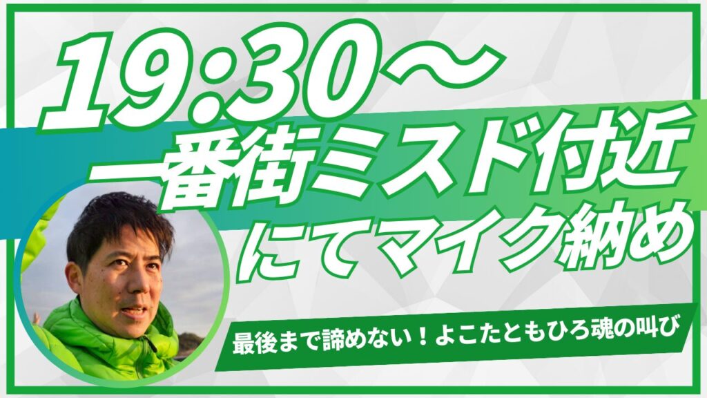 横田ともひろの知名度UP!ご家族やご友人、職場などで話題にしていただけたらとても嬉しいです!